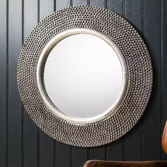Round frame with raised bobble effect in a pewter finish.