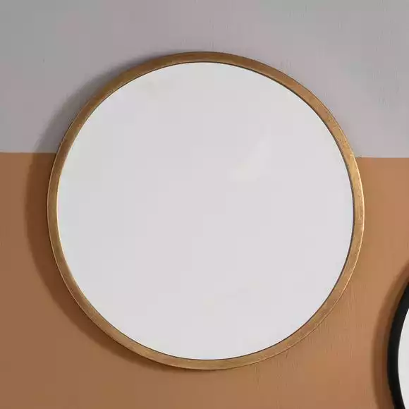 Transform your space from boring and empty, to sleek and stylish with the Henty Round Mirror. Featuring a thin metal frame in a luxurious antique gold finish and simple bevelled centre mirror piece, this piece is perfect for adding those minimalist details to a modern themed décor and creates a striking and eye-catching look.