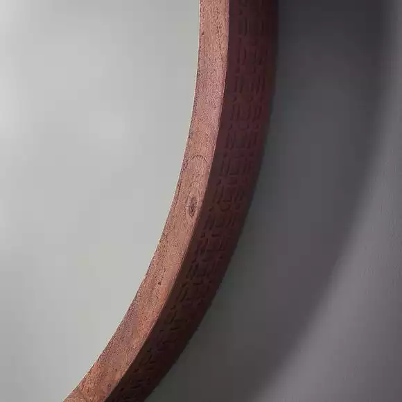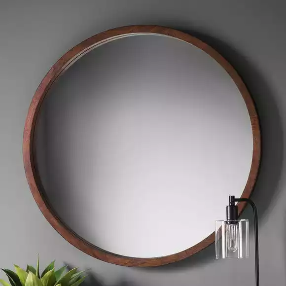 Showcasing the natural look and stunning brown finish of the Lexington Retreat Round Mirror, made using Mango solids with mixed timber veneers of Teak, Mahogony, Mindy Ash and Mango which creates a gorgeous contrast and perfect to place anywhere in your home.