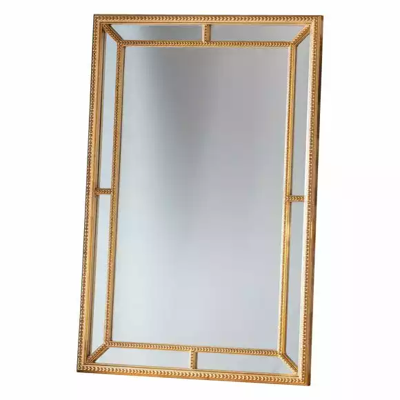 This gold style mirror will add a classic look to your home. Made from glass and solid wood, this mirror can be hung 2 ways.