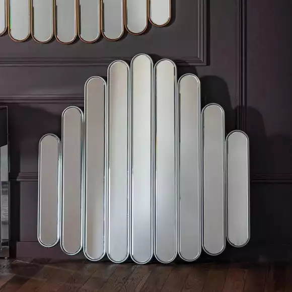 Create a spectacle with the stunning Moline Shiny Silver Mirror for an eye catching focal-point in your home. With a fantail shape and shiny silver finish, this mirror oozes with style and sophistication.