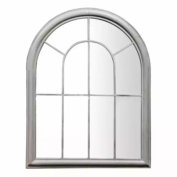 Reflect in nature with the simple, grand styles of the Trieste Outdoor Mirror featuring a window design in a painted grey finish frame. The arched top and bold shape adds a new dimension to any outdoor space.