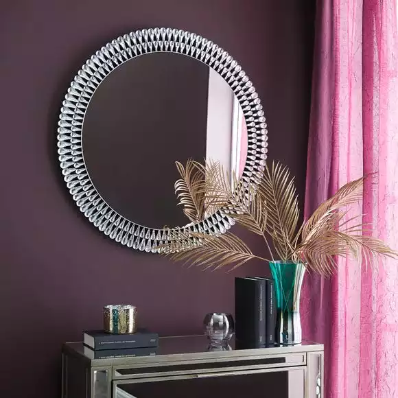 This beautiful mirror would be a stunning statement piece to a range of rooms. Featuring a circular shape with a gorgeous diamond gem edge, this mirror would be perfect for adding a glamorous touch to your home.