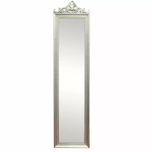 Finished in a silver tone, this full-length floor-standing mirror features a moulded frame with studded detailing and a baroque inspired trim.