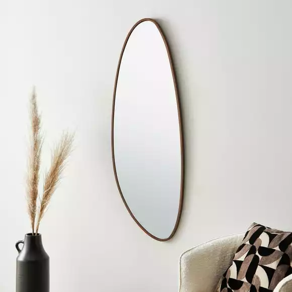 With a contemporary pebble shape, this mirror will add a modern and contemporary look into a room. The metal frame gives this mirror a stylish, on trend design that will make a statement piece in any room. This mirror is part of a collection and hooks to hang on the wall. Available in a range of colours to suit your space.