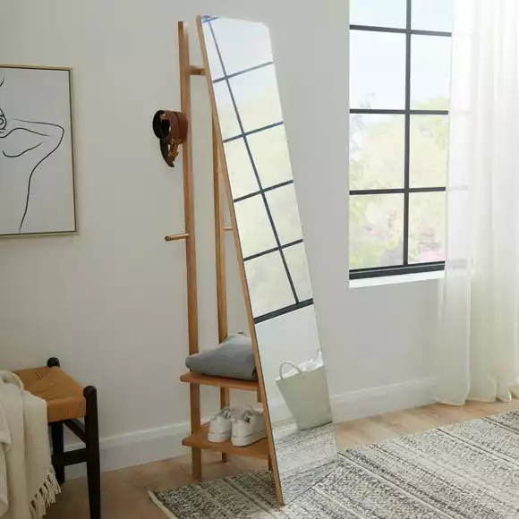 View your entire outfit from head to toe with our Oak Storage Mirror. The mirror offers additional storage space inside your room. You are able to move the mirror as often as you like to suit your preference without damaging your wall.