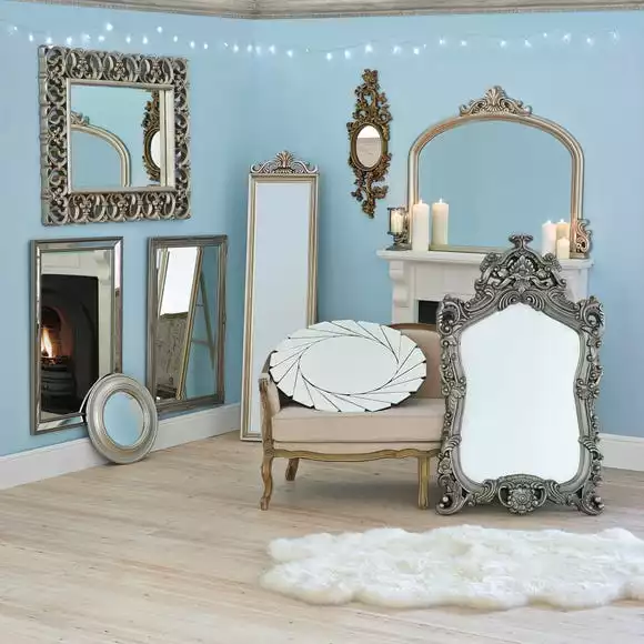 Crafted with a glossy silver finish, this ornate silver wall mirror features a highly polished resin frame with intricate detailing that adds a stylish and artistic element to your home. Whether you want to hang this stunning mirror portrait or landscape, it will be sure to inject a classic yet contemporary touch to your décor.