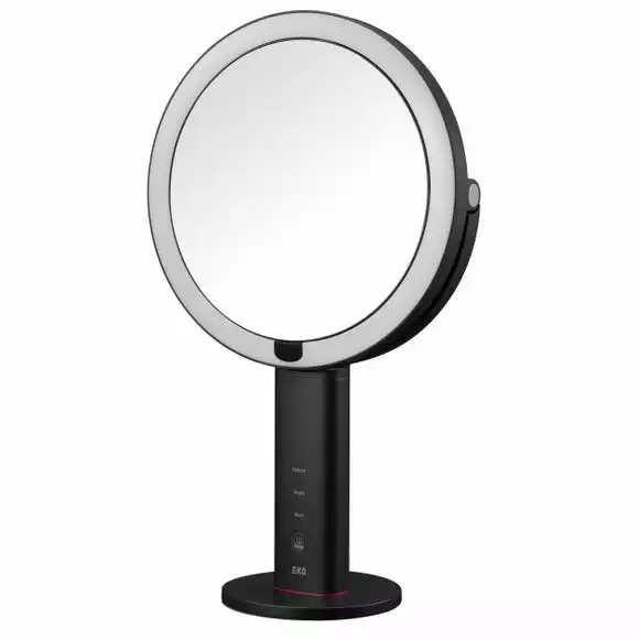 Even in your darkest rooms, the EKO iMira Pro will offer outstanding visibility. So use the powerful LED light to help light up your face to help you achieve the most glowing of makeup looks. No matter the stage of your routine, this mirror has 2 sides and offers you both 1x and 5x magnification. Having an adjustable brightness (LUX 1100, CRI 96) combined with a choice of 3 light tone settings allows for a variety of looks. Natural simulates natural sunlight for daytime looks, cool bright light helps show fine definition of detail and indoor warm lighting is helpful for evening occasions. The automatic on/off sensor detects when you are in front of and away from the mirror: the mirror turns off 12 seconds after you move away. One charge of the will last you up to 4 hours of continuous use or around 3-4 weeks of average daily use. The mirror comes with a 1-year manufacturer warranty.