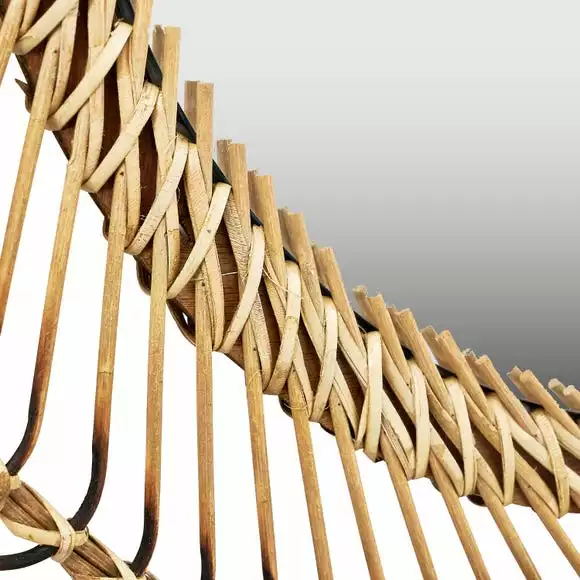 Bring a fresh and natural vibe to your home with the eye-catching Bamboo Small Round Wall Mirror. Designed with a scandi feel, this piece is made from natural bamboo with a stunning and intricate detailed hand-woven rattan frame securely surrounding the round mirror for a spectacular piece of wall art. Also available in a larger size, these can be displayed alongside each other or spread apart for a coordinated look.