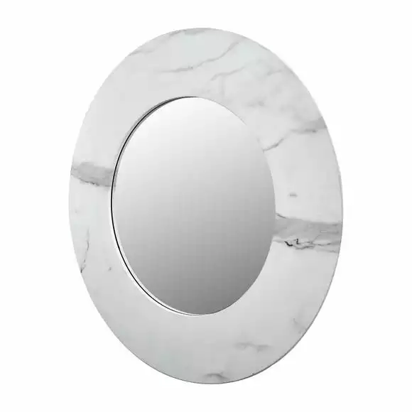Introducing the fresh and contemporary looks of this round wall mirror in a modern white and grey marble effect for a stylish and effective home enhancement. The simple circular shape will refresh a spare room, small bathroom or utility room and features integrated hangers on the reverse for easy fitting.