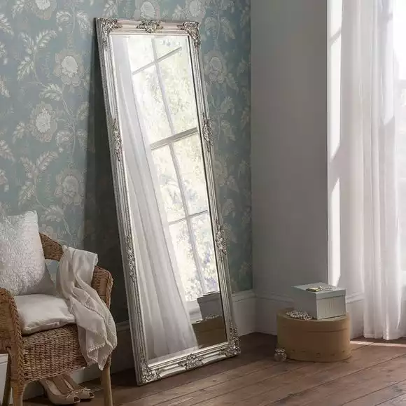 Enhance your home decor with the Florence silver Mirror, a beautifully crafted piece that injects a traditional baroque styling element to any home style. This full-length mirror features a decorative wooden frame that will give your home a graceful ornemntal touch.